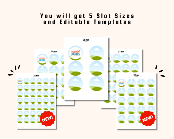 𝐒𝐈𝐙𝐄: The Slot size include in the template are 58mm, 44mm and 37mm, presented on A4 paper size.
